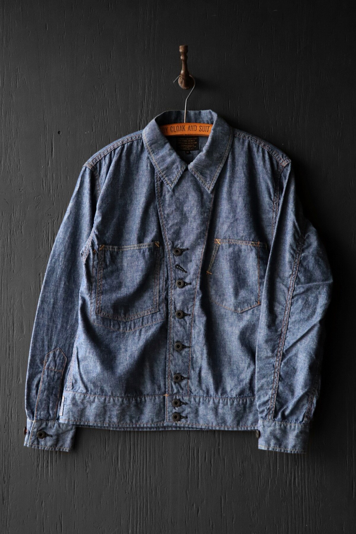 1940年代の軍物ジャケットをセルビッチ・シャンブレーを使用し製作致しました。