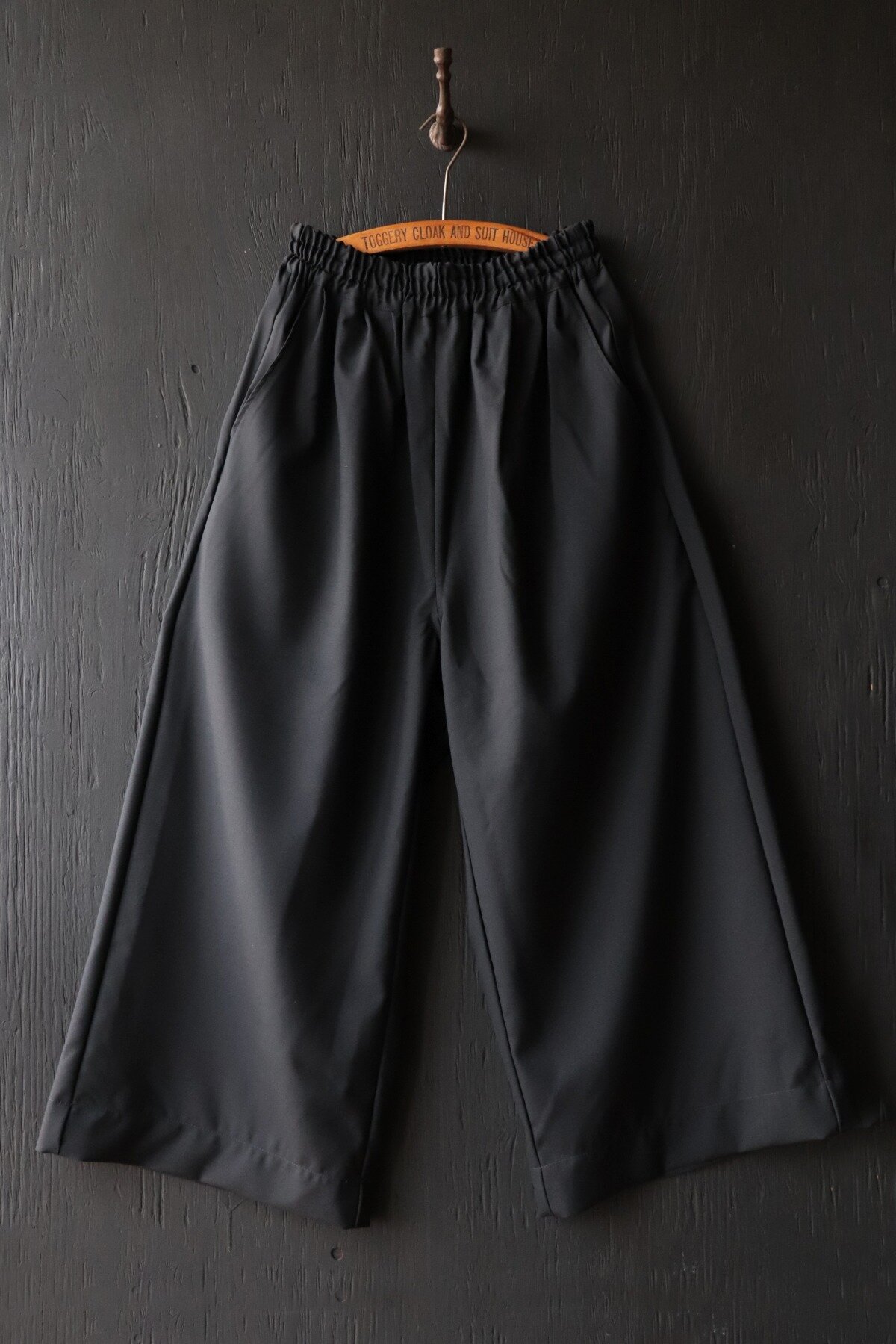 流れるような美しいビジュアルは勿論のこと、ナチュラルストレッチ性、接触冷感、洗濯可能など多機能なサマーウール生地に加え、肌との接地が少なく風通しの良いワイドシルエットにより、非常に快適な穿き心地に仕上がっております。