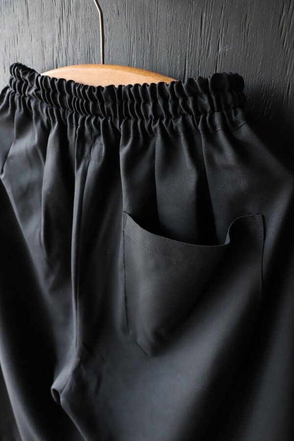 持ち味であるワイドシルエットは継承しつつ、ウエストをフルゴムにドローコードの入ったイージーパンツ仕様へアップデートしました。