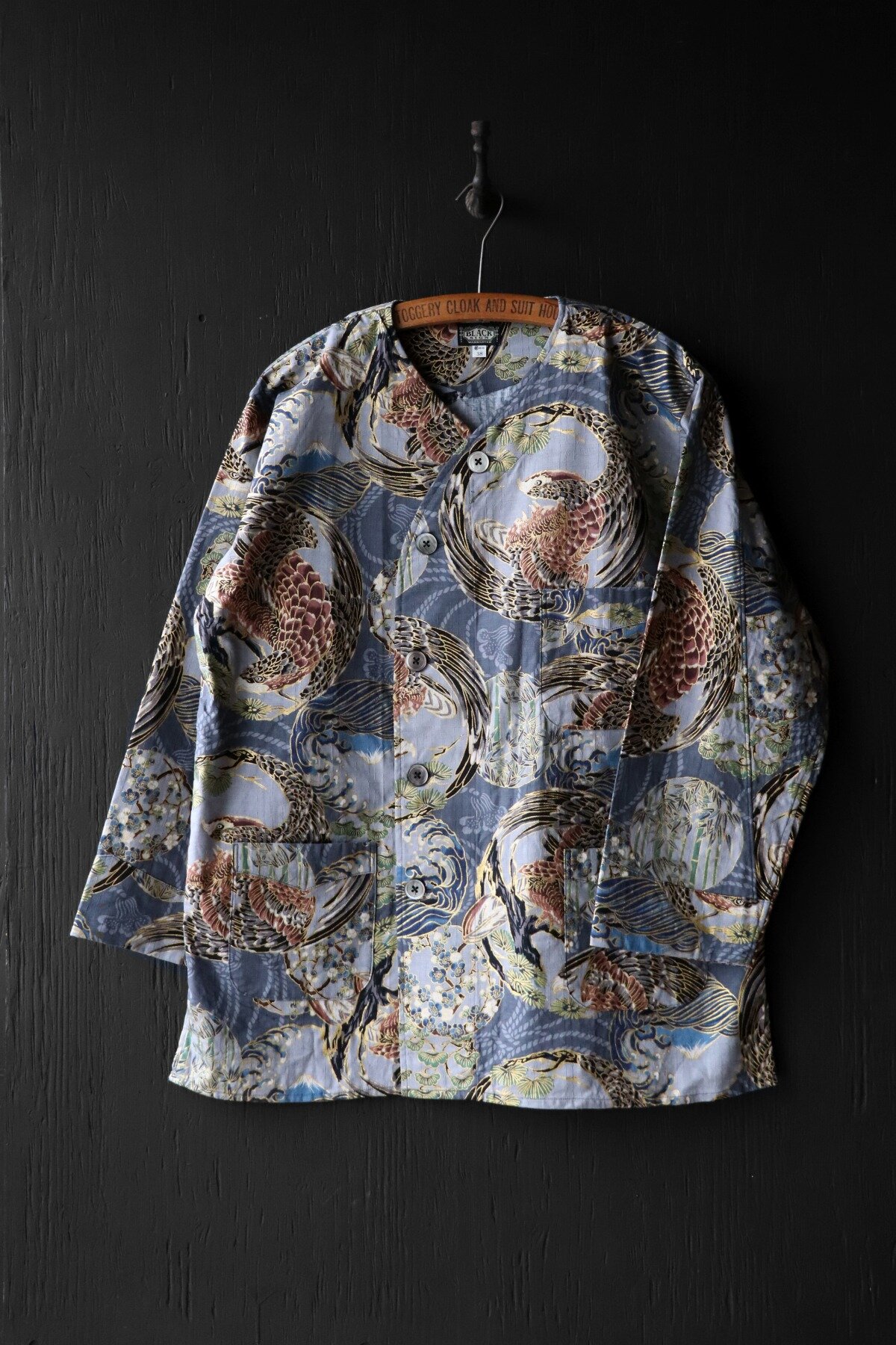 襟からフロント・ボトムにかけて大きくオフ・セットしたデザイン、複雑なパターンで縫製した9分丈の袖や襟裏の汗止めが大きな特徴になっています。