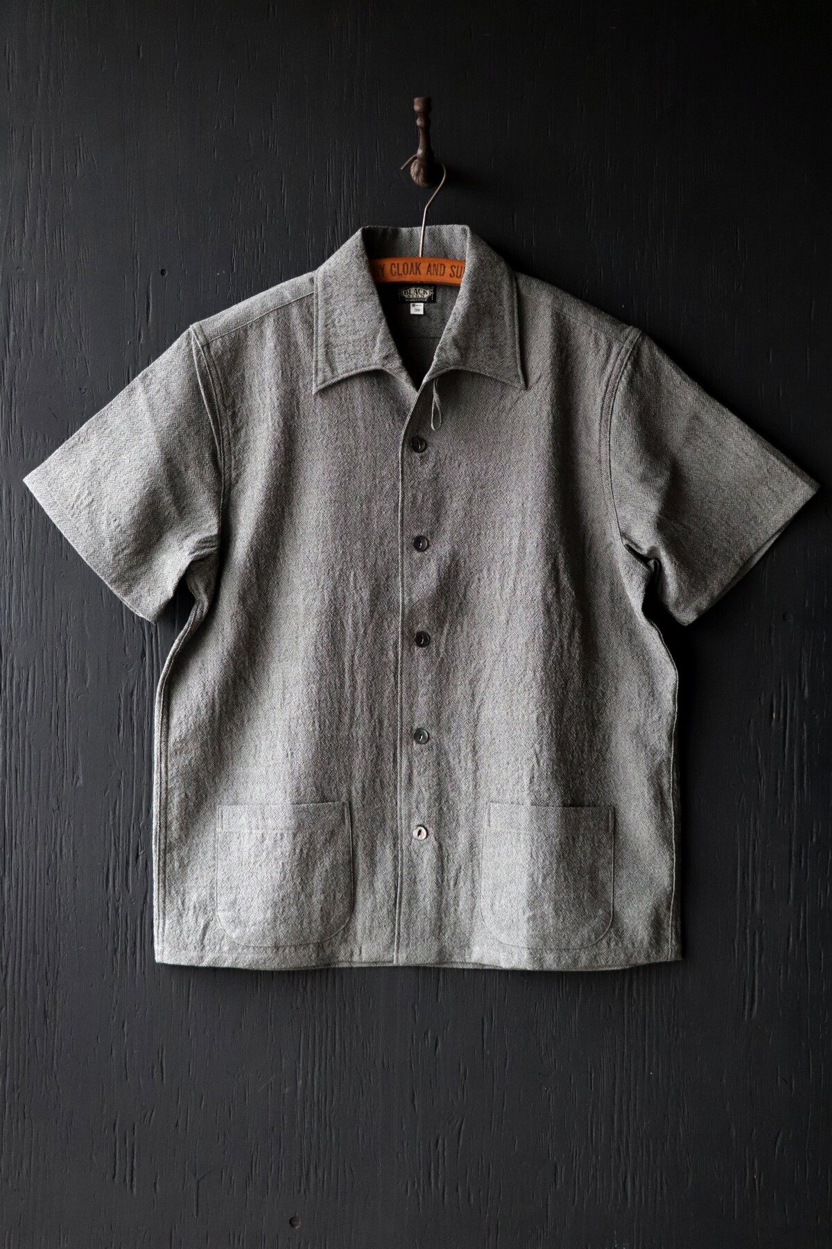そんな時代を彷彿させるこのシャツは、ボトムに縫い付けたパッチ・ポケットとイタリアン・カラーの襟を閉じるループが特徴となっています。